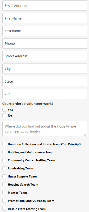 There are two volunteer options to volunteer with Hope Village: